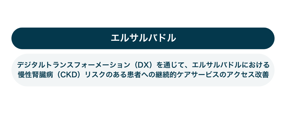 共創テーマ、デジタルヘルス、中南米、エルサルバドルデジタルトランスフォーメーション(DX)を通じて、エルサルバドルにおける慢性腎臓病(CKD)リスクのある患者への継続的ケアサービスのアクセス改善 Posted on 2026年2月11日2026年3月9日 by admin Challenge: El Salvador faces a critical gap in the early detection and diagnosis of chronic kidney disease (CKD), driven by structural limitations within the primary‑care system and sever… 続きを読む →