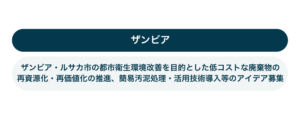 ザンビア・ルサカ市の都市衛生環境改善を目的とした低コストな廃棄物の再資源化・再価値化の推進、簡易汚泥処理・活用技術導入等のアイデア募集